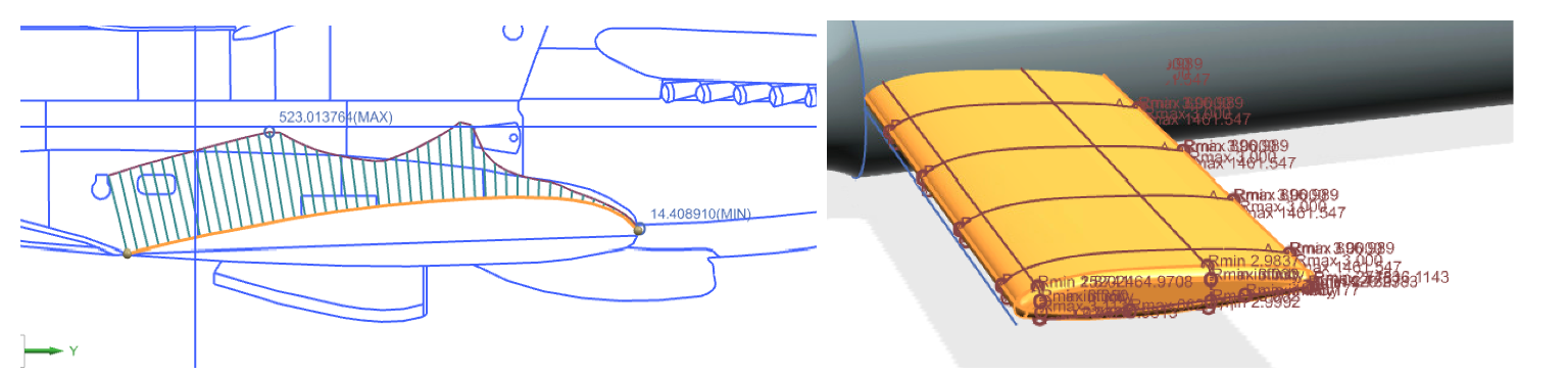 For this we had to compare the curvature of radius of the wing in our 2D model to that of our 3D model.